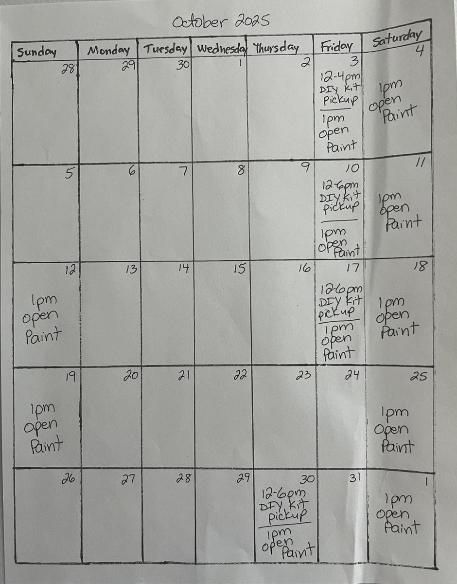 I also offer Open Paint, fun Workshops and DIY take-home kits if you want to stop in anytime to create at your own pace.
